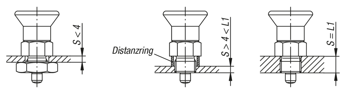 Form B: ohne Rastnut, mit Kontermutter