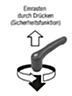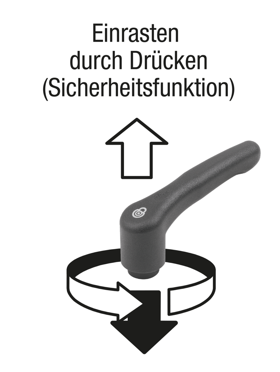 Im Ausgangszustand lässt sich der Hebel frei drehen und besitzt keine Verbindung zur Klemmstelle. Erst durch Drücken des Griffhebels rastet die Verzahnung ein und die Klemmung kann gelöst oder angezogen werden.