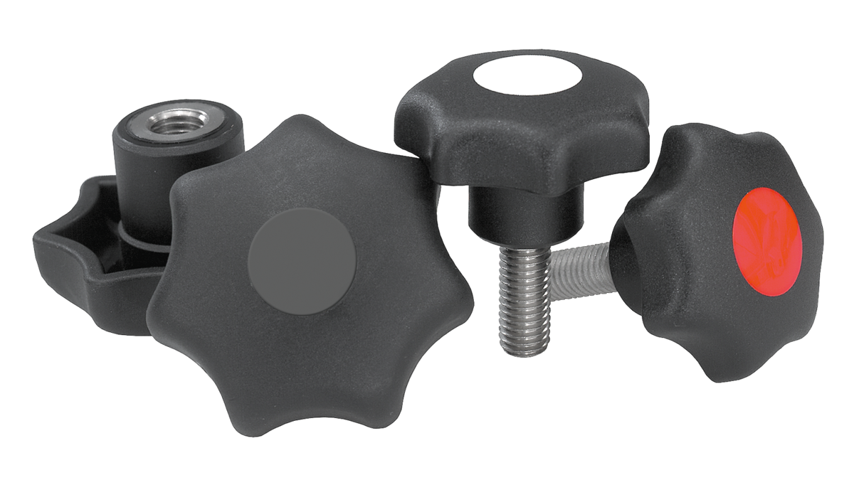 Sterngriffe ähnlich DIN 6336 Stahlteile Edelstahl, Innengewinde mit Deckel, Form K