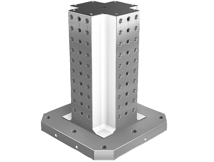 Aufspanntürme mit Rasterbohrungen werden auf horizontalen Bearbeitungszentren eingesetzt.