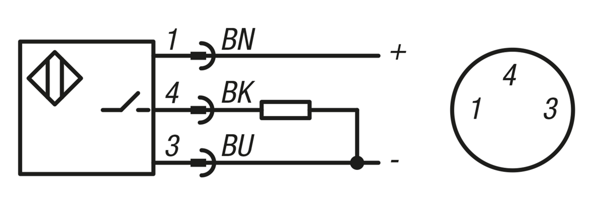 Der gesicherte Schaltabstand wird erreicht, wenn der Stößel bündig bis zur Anschlagfläche der Führungsbuchse betätigt wird. Der Sensor wird unmontiert mitgeliefert.