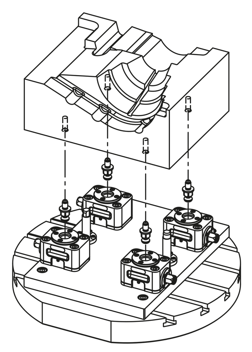 Betätigung mittels Schlagschrauber mit einstellbarem Drehmoment oder manuell mit Spannschlüssel.