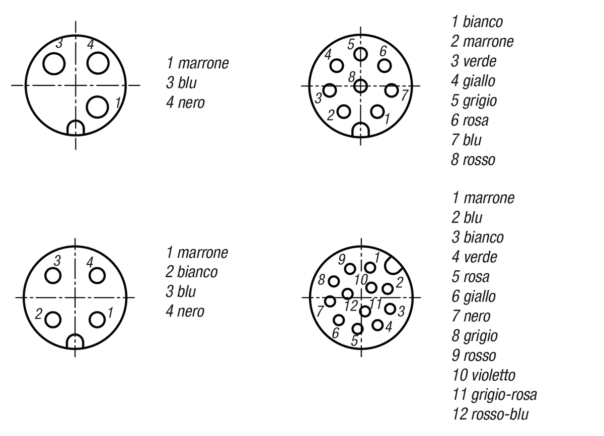 Connettori a spina bussola M12x1 con chiusura a vite, forma A, bussola dritta