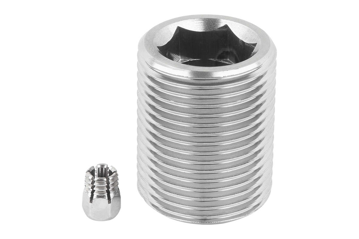Boccole di posizionamento in acciaio o acciaio inox per sensore di stato, forma C con filettatura e cono di flusso