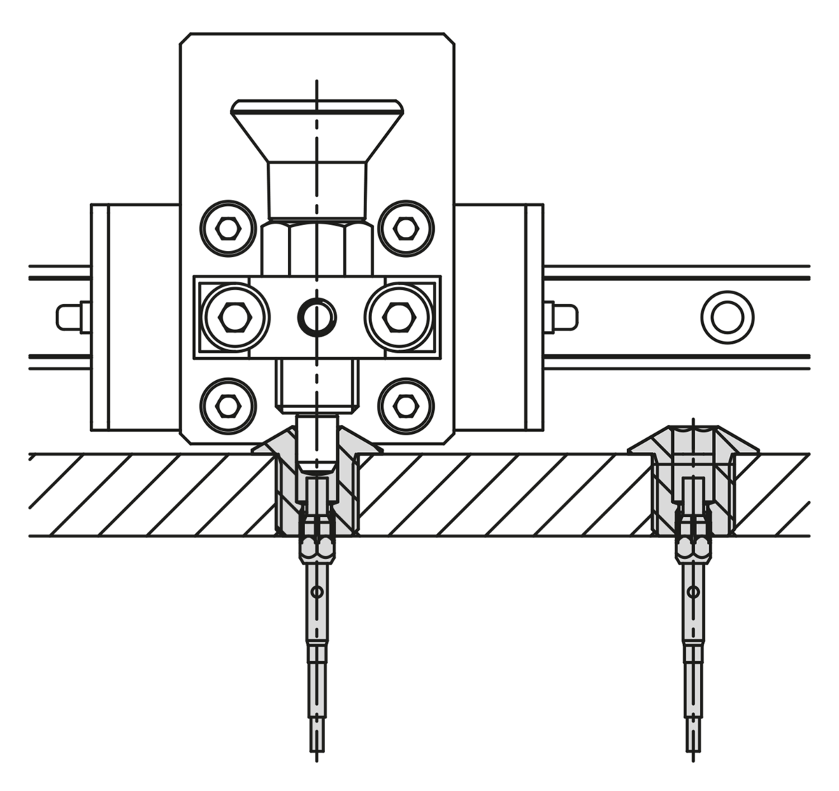 Le boccole di posizionamento costituiscono un punto di montaggio per gli elementi di comando e arresto a forma di perno, che possono agganciarsi in modo sicuro e preciso.