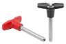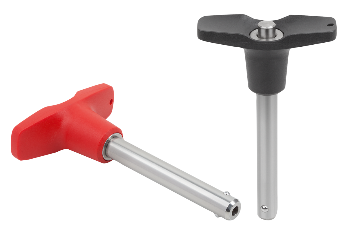 Gli imbastitori a sfera servono per fissare e collegare pezzi e utensili in modo semplice e veloce. Premendo il pulsante è possibile sbloccare le due sfere e il perno può essere inserito nei pezzi da collegare. Non appena si rilascia il pulsante, le sfere bloccano il collegamento in modo sicuro. Se necessario, gli imbastitori a sfere possono essere dotati di un cavetto di tenuta.
