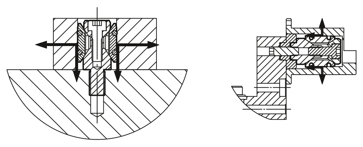Le morse di centraggio con filettatura interna sono compatibili con il sistema modulare M6 (vedere esempio di applicazione).