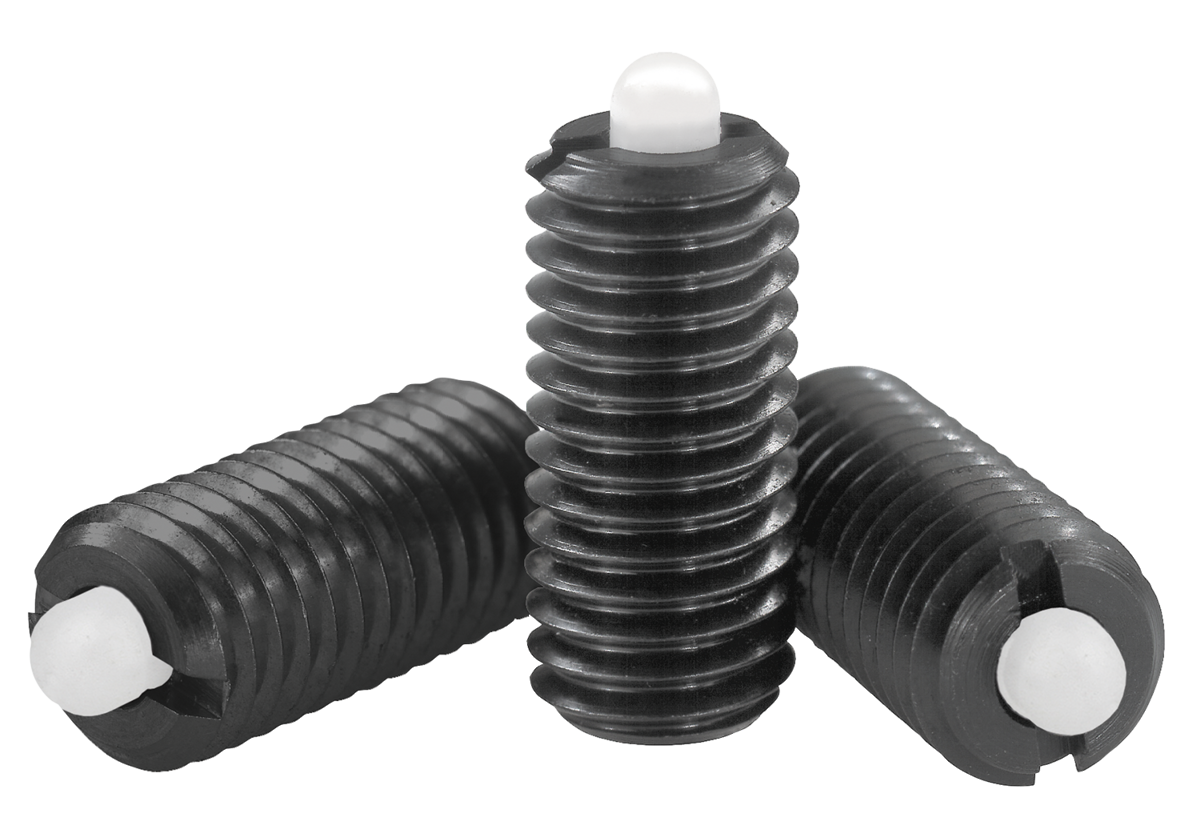 Pressori a molla con esagono incassato e puntale in POM, forza elastica standard