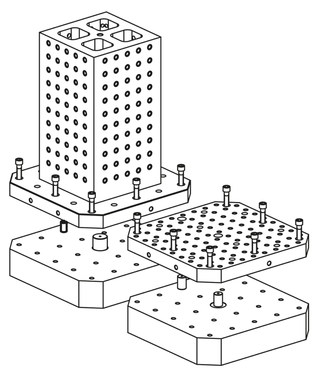 I perni di centraggio con foro direzionale sono compatibili con gli elementi di base 01263, 01265 e 01850.