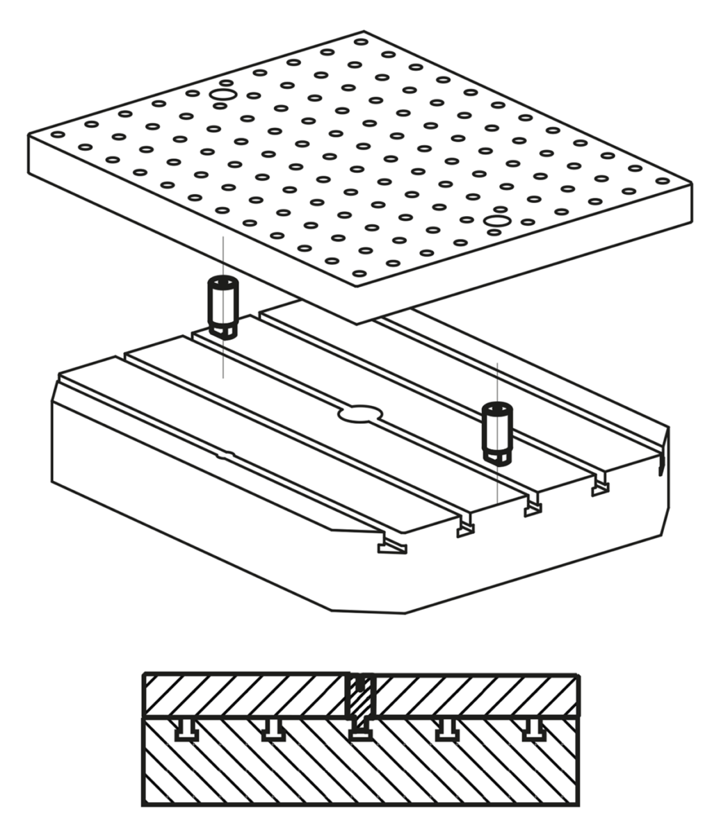 Posizionatori per piastra d'appoggio con cave a T.