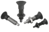 Spine di posizione in acciaio o acciaio inox, senza collare, con impugnatura a fungo in plastica e perno di bloccaggio allungato, senza controdado