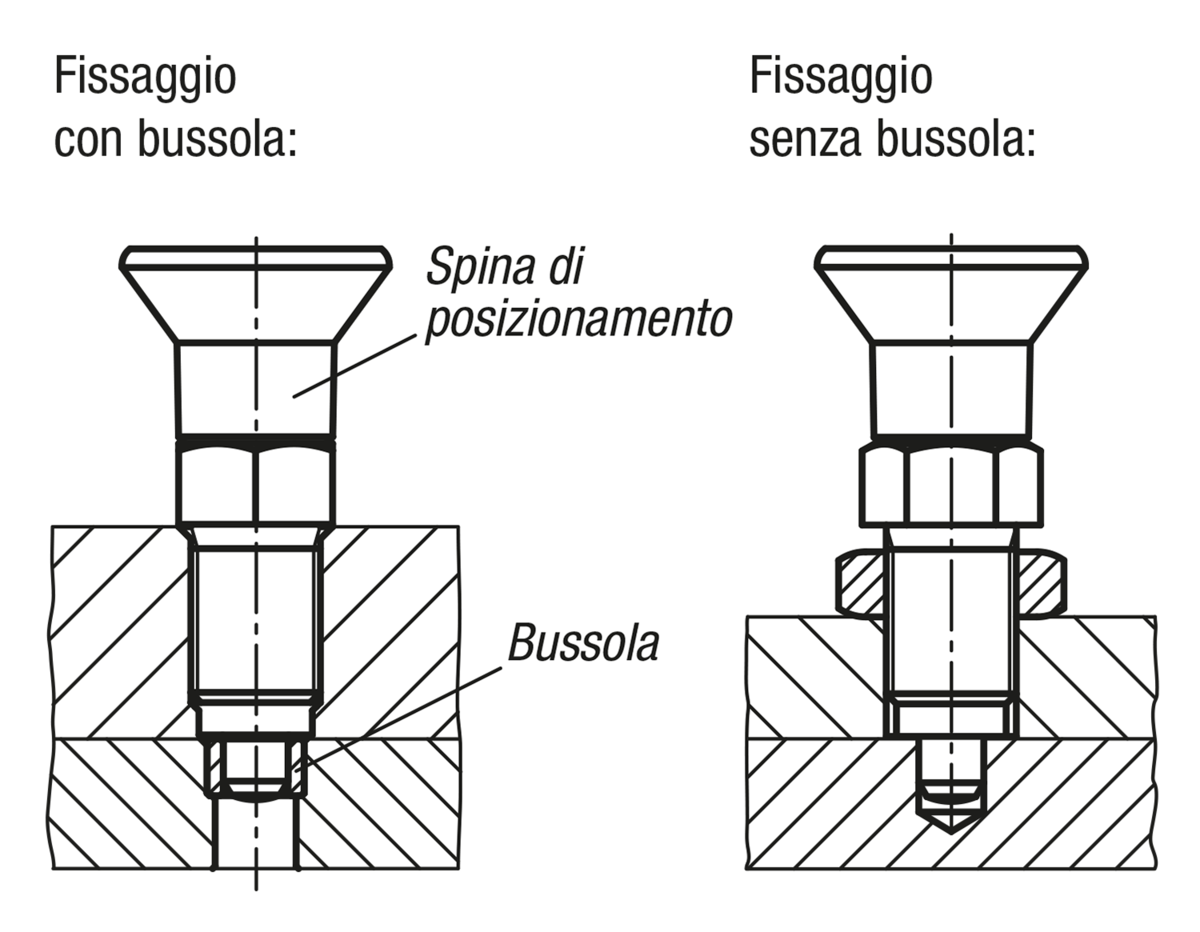 - I perni di arresto (spine di posizione) consentono l'arresto e il bloccaggio