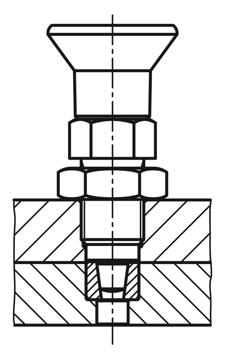 Le superfici di appoggio coniche vengono adattate mediante il corpo filettato e il controdado.