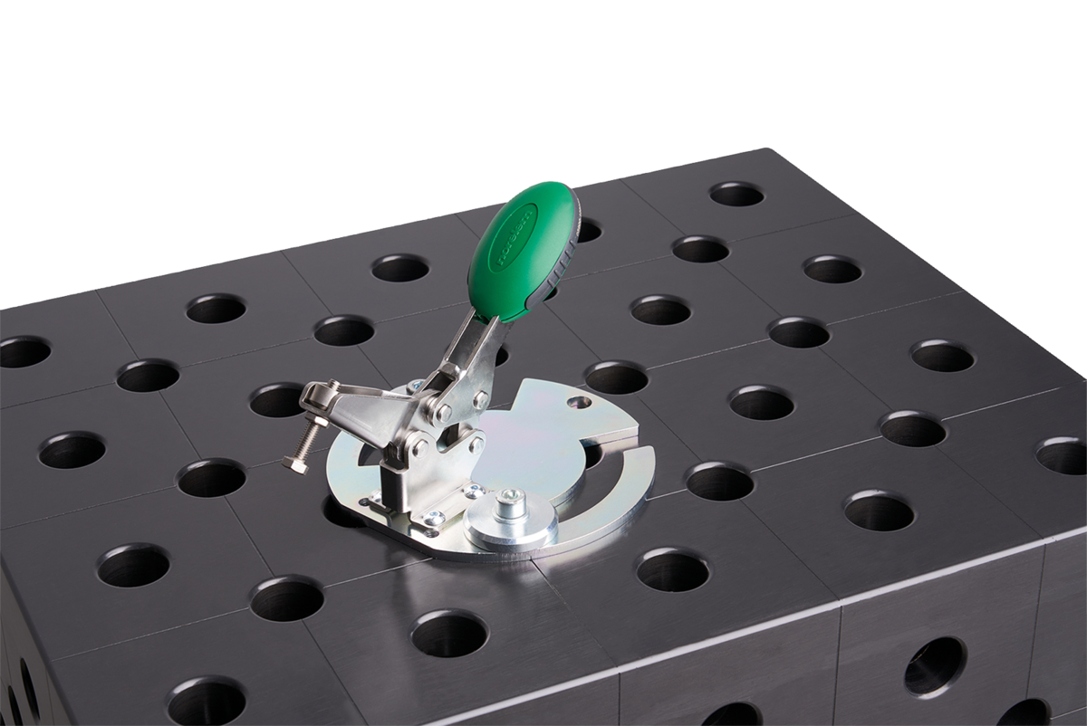 Le flange di adattamento possono essere utilizzate in combinazione con le ginocchiere di serraggio rapido. Consentono un posizionamento senza problemi delle ginocchiere di serraggio ad esse collegate.