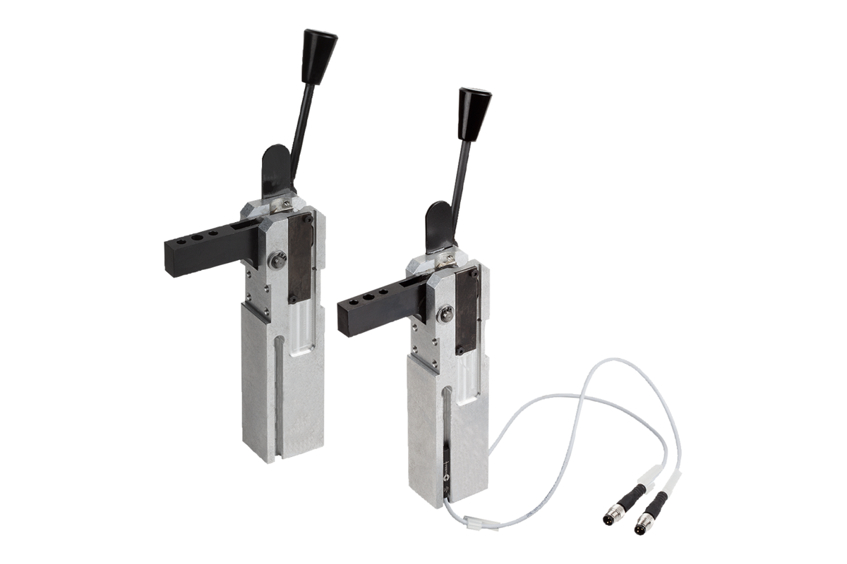 La mini ginocchiera si caratterizza in particolare per le sue dimensioni ridotte, il posizionamento preciso del braccio di serraggio e la sua leggerezza. Le mini ginocchiere sono completamente autobloccanti. La forza di serraggio è garantita anche in caso di perdita di pressione, poiché la leva articolata integrata nel braccio tenditore consente di raggiungere una posizione sopra il punto morto. Grazie a una lubrificazione permanente e bronzine speciali, le mini ginocchiere sono prive di manutenzione. Possono funzionare con aria secca e priva di olio.