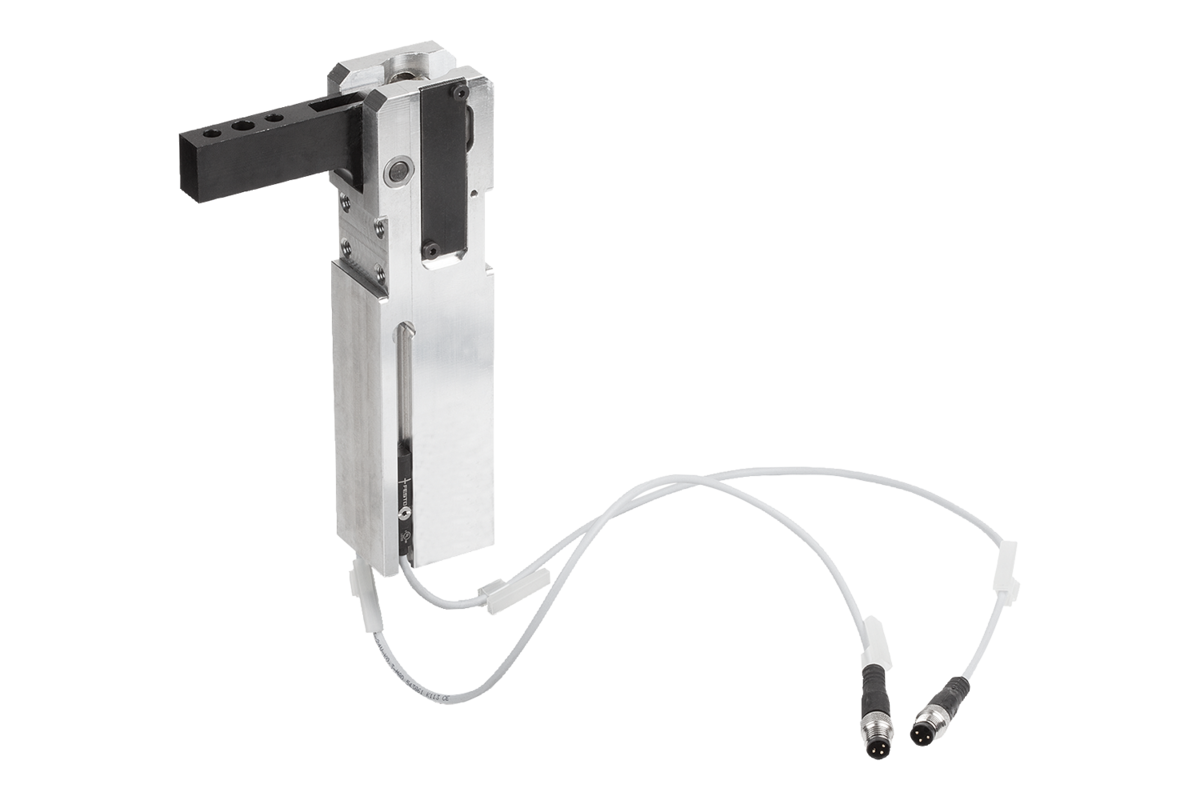 La mini ginocchiera si caratterizza in particolare per le sue dimensioni ridotte, il posizionamento preciso del braccio di spinta e la sua leggerezza. Le mini ginocchiere sono completamente autobloccanti. La forza di serraggio è garantita anche in caso di perdita di pressione, poiché la leva articolata integrata nel braccio tenditore consente di raggiungere una posizione sopra il punto morto. Grazie a una lubrificazione di lunga durata e bronzine speciali, le mini ginocchiere sono prive di manutenzione. Possono funzionare con aria secca e priva di olio.
