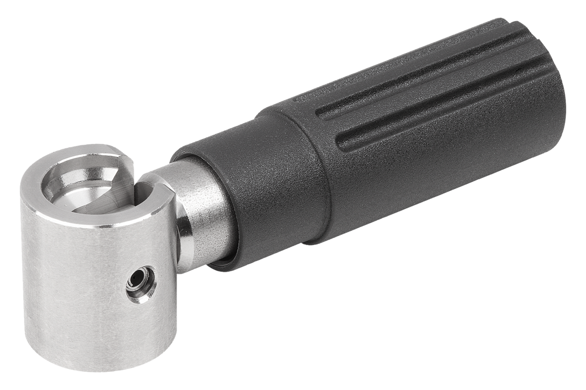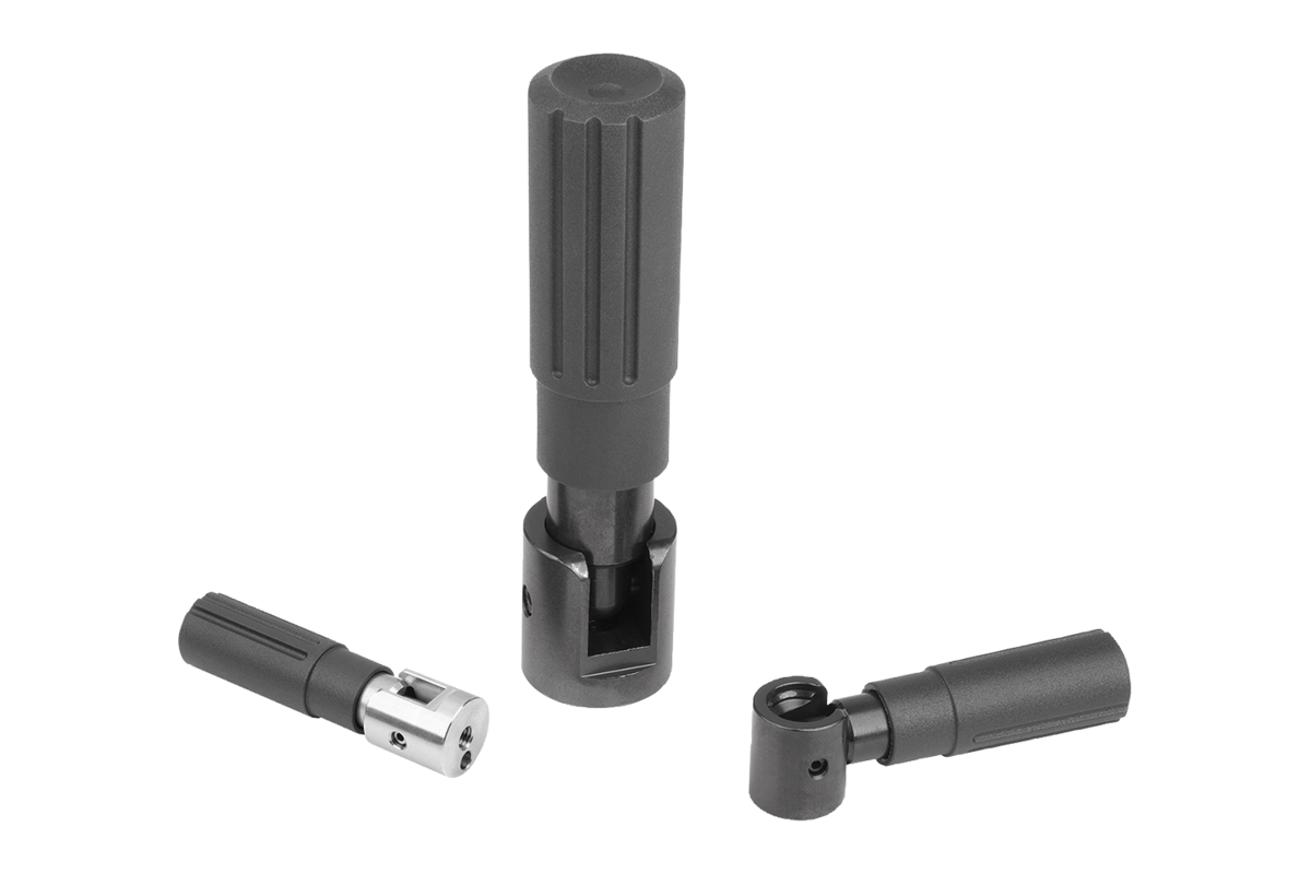 Le impugnature cilindriche sono fornite già assemblate e possono essere avvitate a volantini, argani e manovelle.