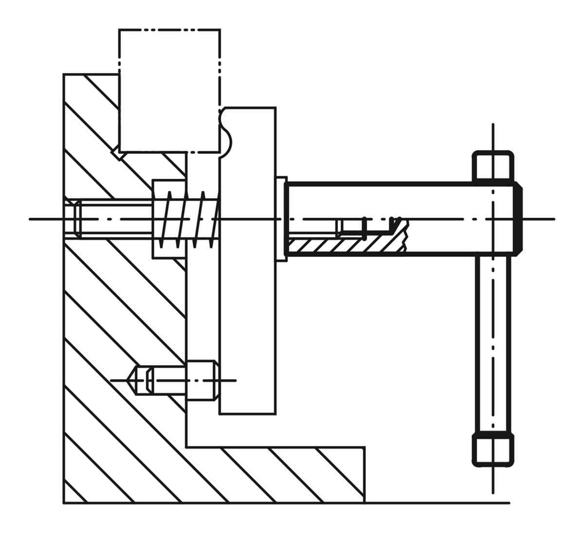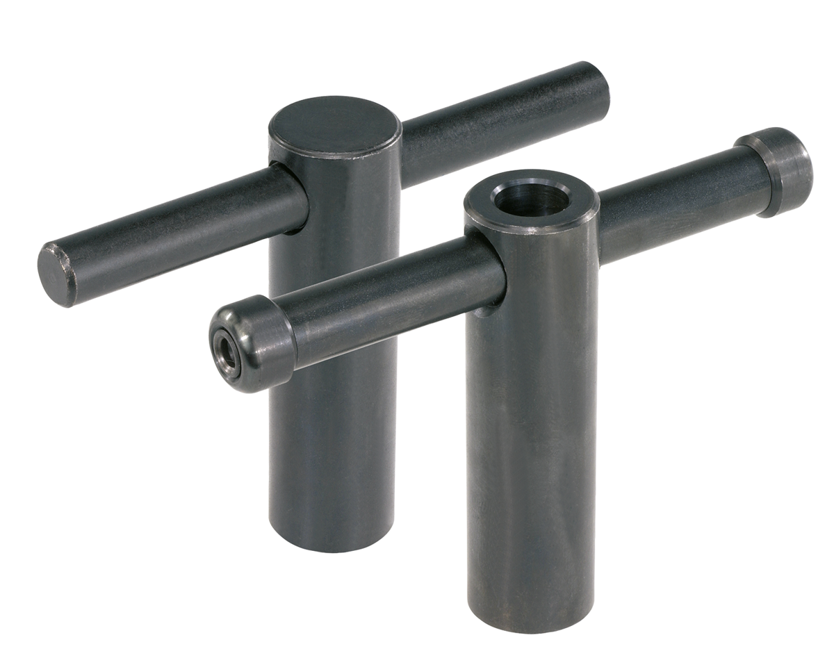Nei dadi a T con leva mobile, la leva è spostabile e viene fissata in qualsiasi posizione con la molla di compressione. Gli anelli limitano lo spostamento.