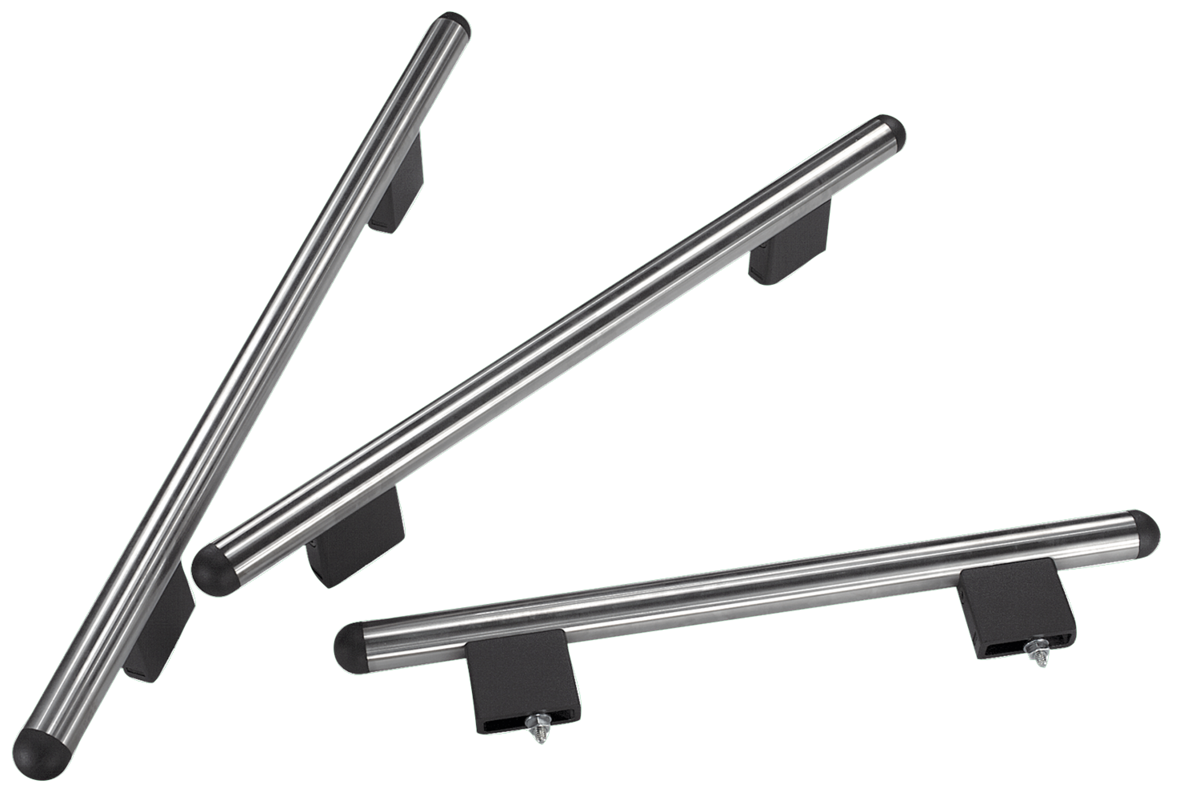 Maniglie tubolari altamente resistenti per le costruzioni meccaniche e di apparecchiature. Semplice montaggio dei componenti dal lato anteriore. Distanza di avvitamento variabile a parità di lunghezza della maniglia.
