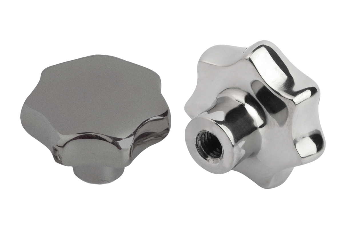 Manopole a lobi in acciaio inox con filettatura esterna.