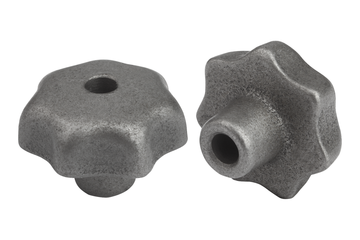 Manopole a lobi in ghisa con rivestimento in plastica.