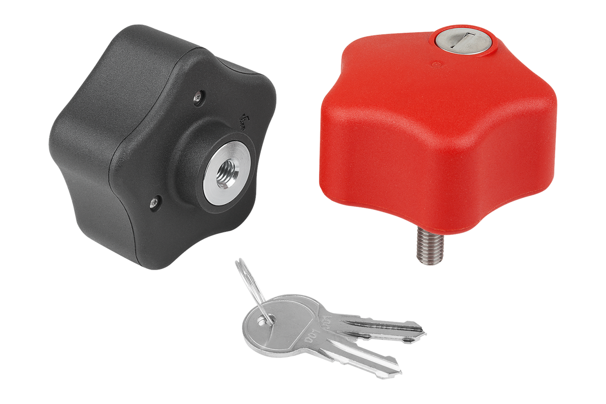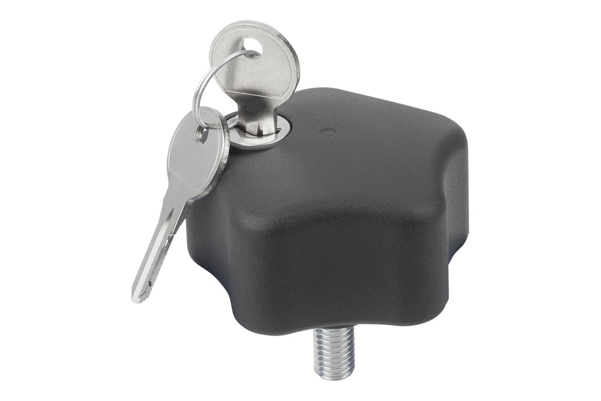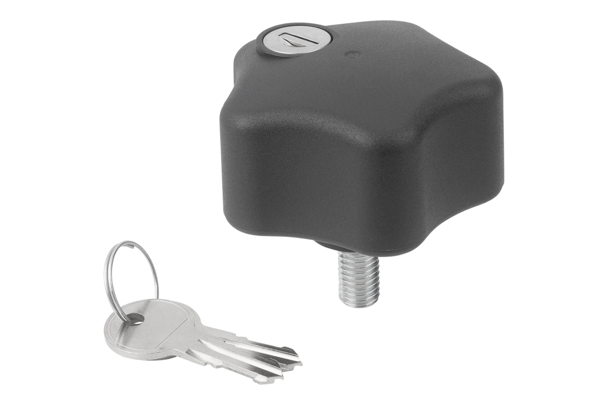 I pomelli a lobi a chiave impediscono l'allentamento incontrollato dello stesso, mediante il cilindro di chiusura si innesca o si interrompe un collegamento tra impugnatura e parte filettata.