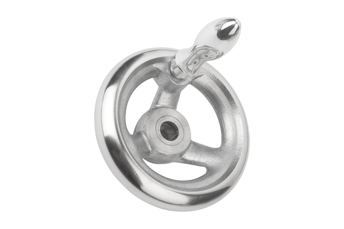 Impugnatura girevole in alluminio, mozzo in acciaio, zincato, passivato blu.