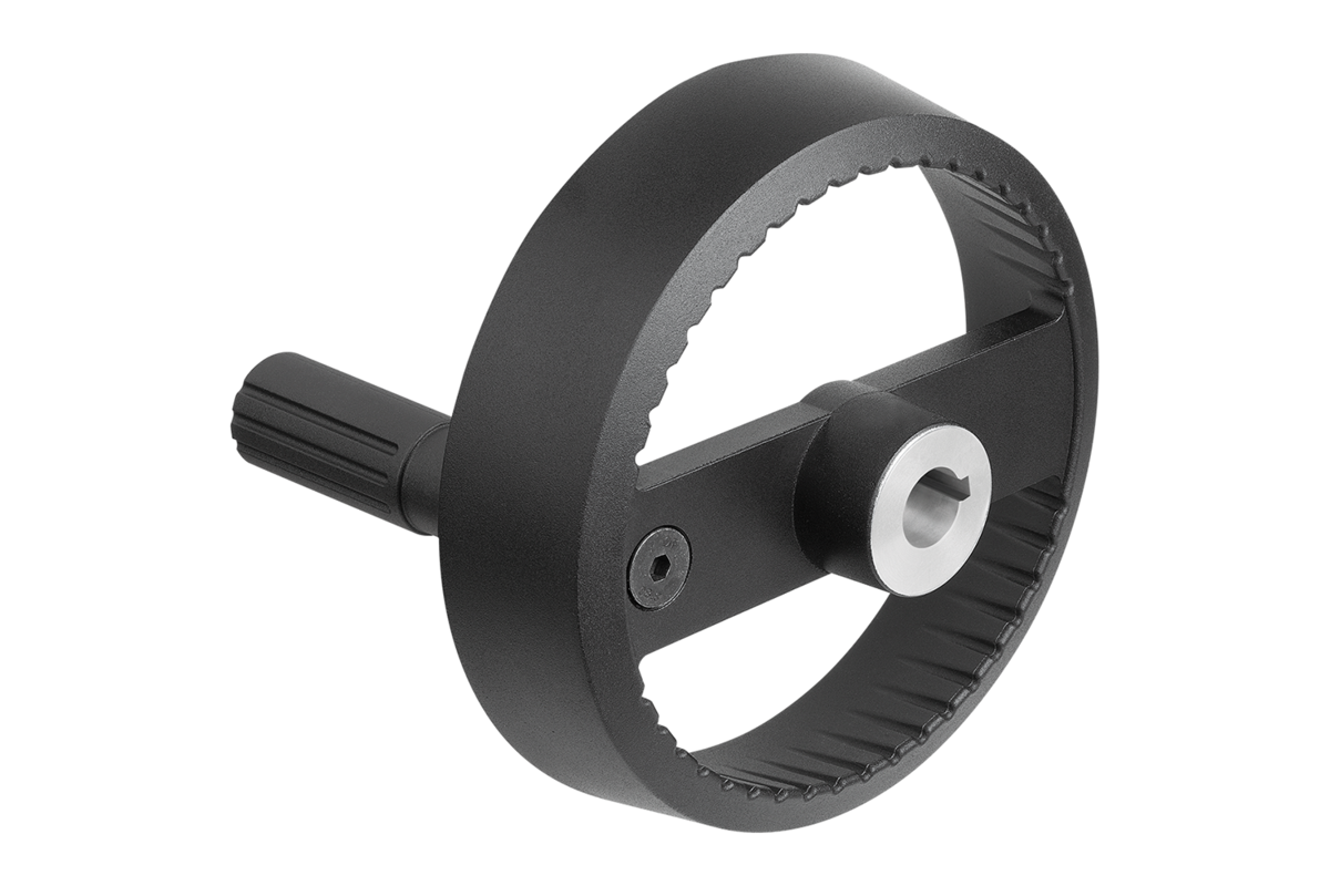 I volantini possono essere fissati all'albero in senso assiale mediante un collegamento con linguetta di aggiustamento tramite una spinatura assiale o con una vite a testa cilindrica DIN 6912 e una pulegge intermedia 07375.
