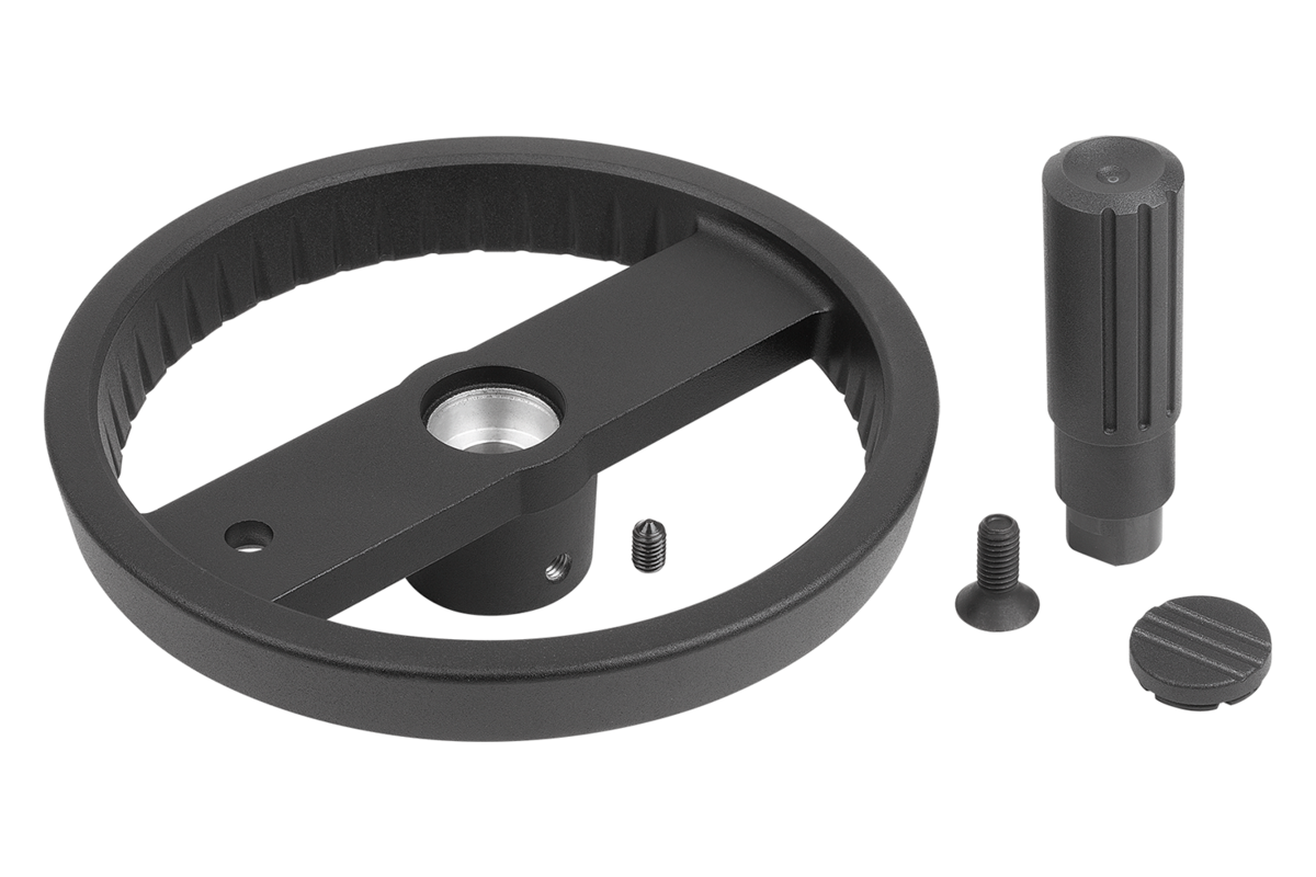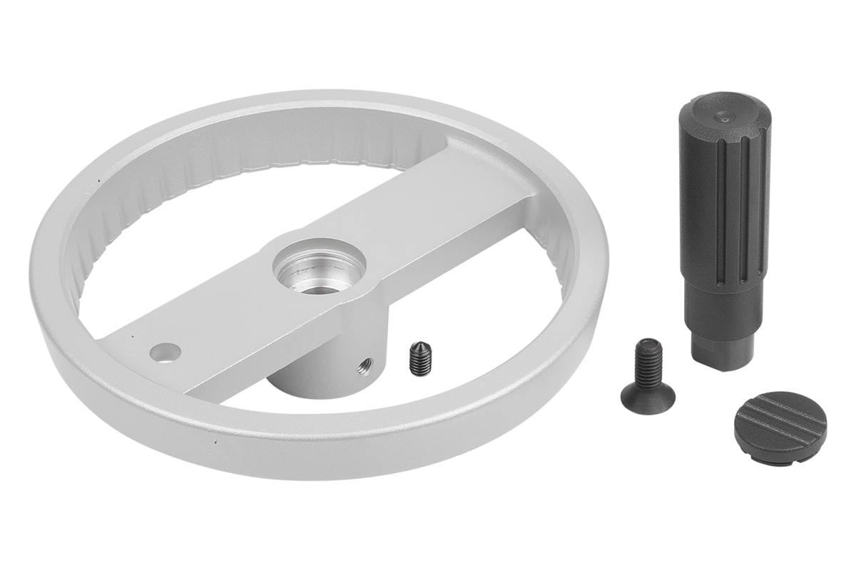 La copertura del mozzo e l'impugnatura cilindrica girevole vengono fornite non assemblate. Per il montaggio è necessario avvitare l'asse dell'impugnatura nel foro di alloggiamento.