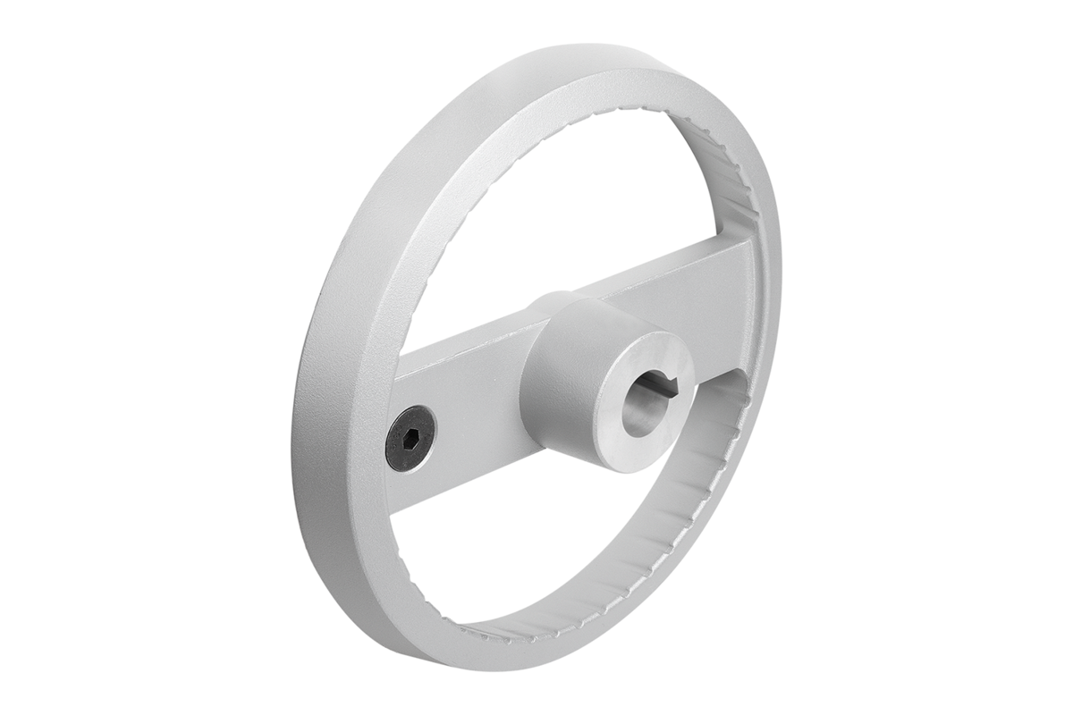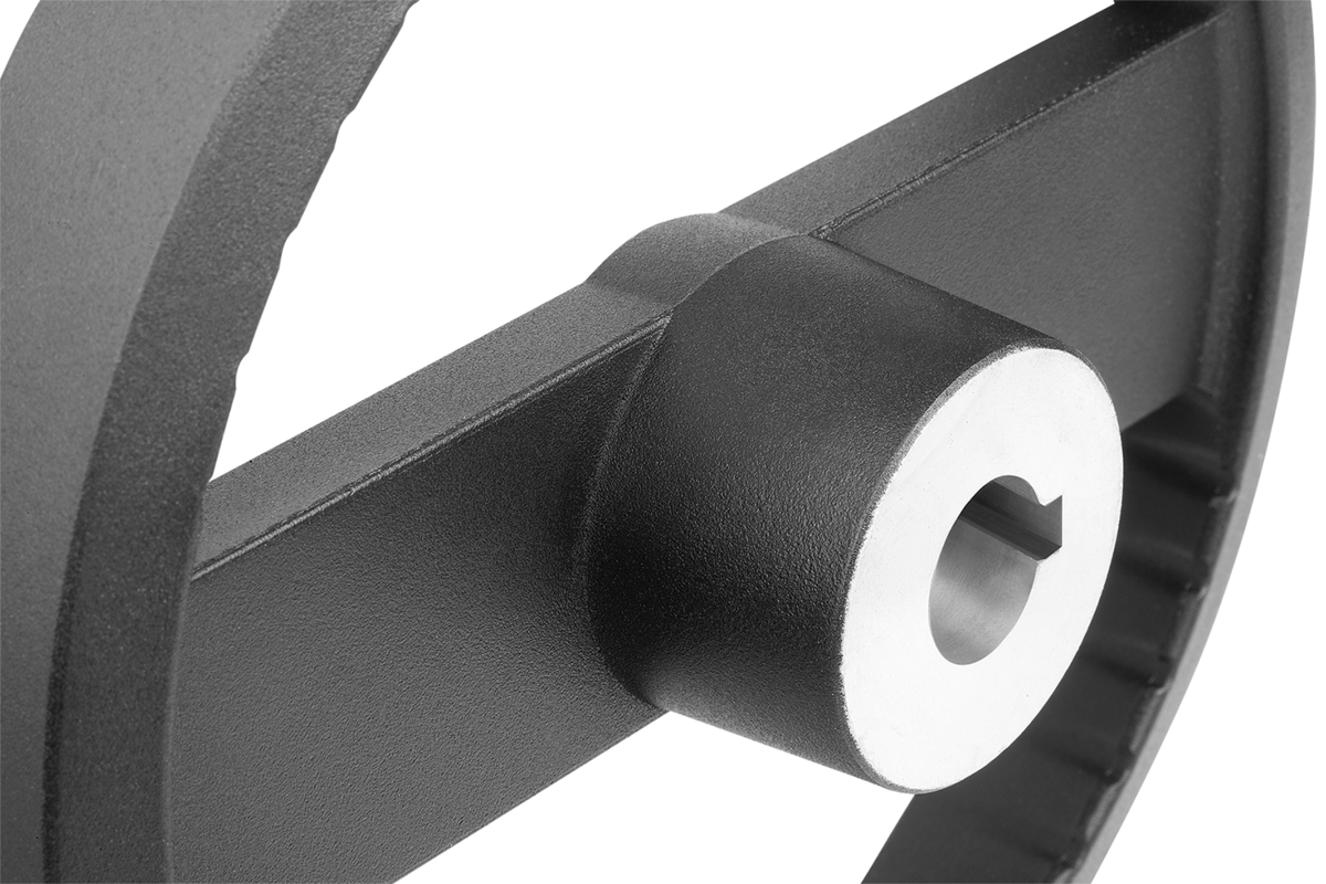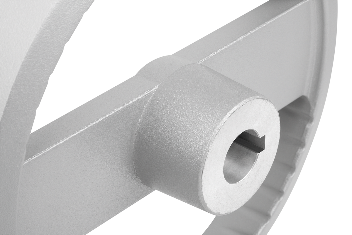 I volantini possono essere fissati all'albero in senso assiale mediante un collegamento con linguetta di aggiustamento tramite una spinatura assiale o con una vite a testa cilindrica DIN 6912 e una pulegge intermedia 07375.