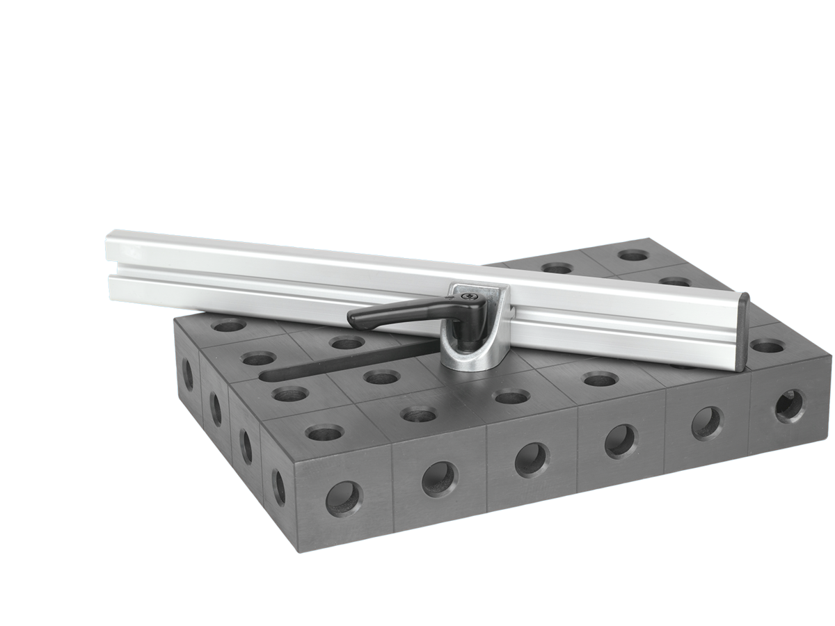 Gli angolari di fissaggio sono idonei per esempio come battuta per il fissaggio dei profili in alluminio sulle tavole di foratura o su piastre con foro Ø16 mm, Ø20 mm o Ø28 mm.