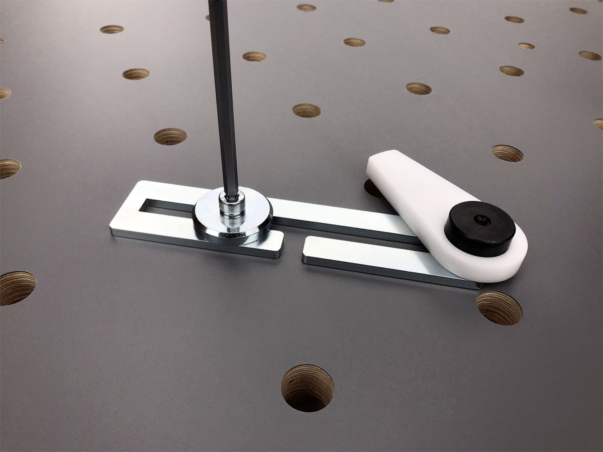 Le piastre possono essere usate insieme a cuscinetti volventi e morsetti a eccentrico per il serraggio indiretto. Le piastre sono fissate usando i bulloni di fissaggio con rondella su tavole di foratura. In combinazione con i dispositivi di serraggio a eccentrico, possono essere fissate anche su tavole macchina con cave.