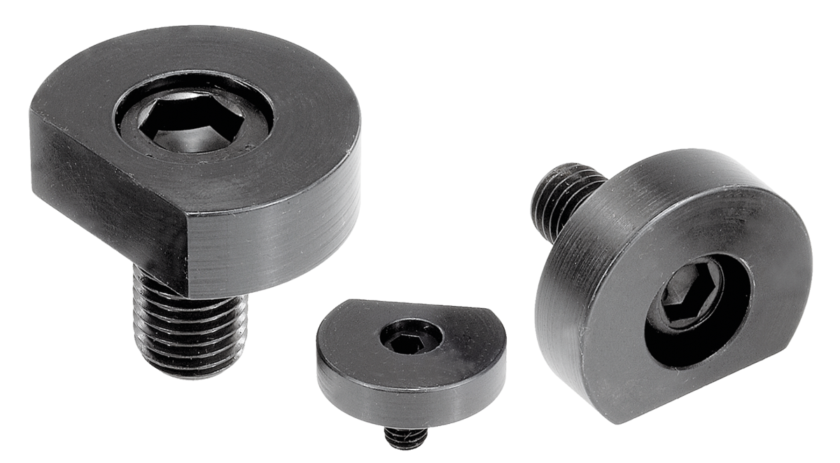 Il morsetto eccentrico ha una rondella sulla quale, mediante fresatura, è possibile realizzare il profilo del pezzo da serrare. Questo consente un fissaggio con perfetto accoppiamento di forma, per pezzi rotondi, profilati o instabili. Il bordo spianato ha una distanza dal centro pari a quella della vite del morsetto eccentrico 04435, in modo che le rondelle possano essere eventualmente sostituite.