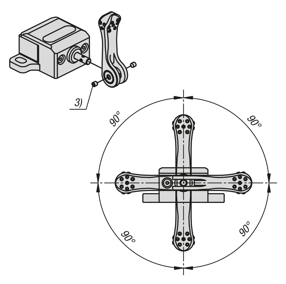 allineata orizzontalmente e verticalmente con incrementi di 90° in modo semplice allentando il perno filettato.