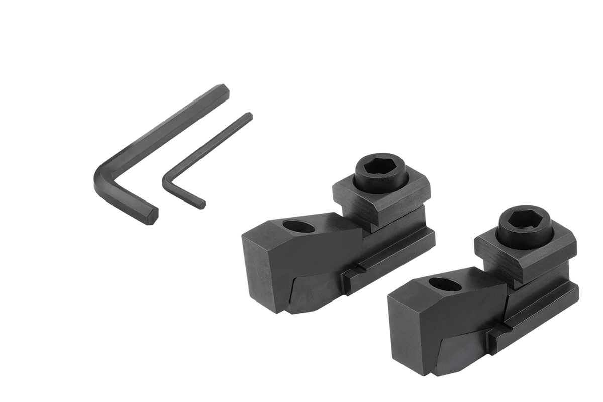 Con questi morsetti di bloccaggio piatti è possibile serrare pezzi lavorati molto bassi. L'effetto cuneo delle ganasce di serraggio preme il pezzo in modo stabile e sicuro sulla tavola della macchina. ”H1” e ”H3” si riferiscono alla massima profondità della cava a T a norma DIN 650. Per ottenere altezze di serraggio inferiori con una minore profondità di cava, il pezzo di serraggio può essere rettificato di una quantità pari a H3.