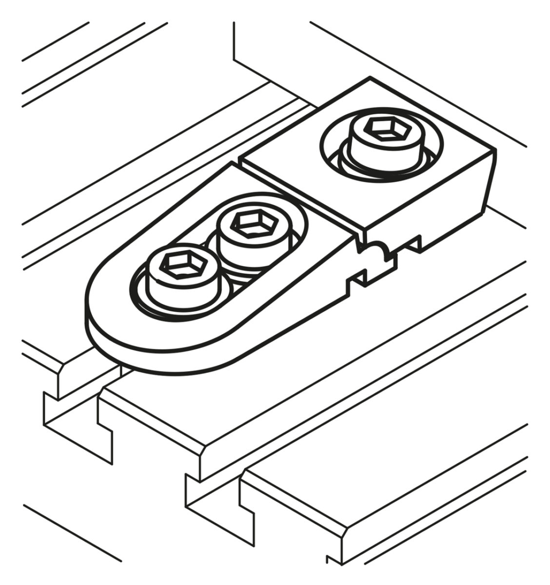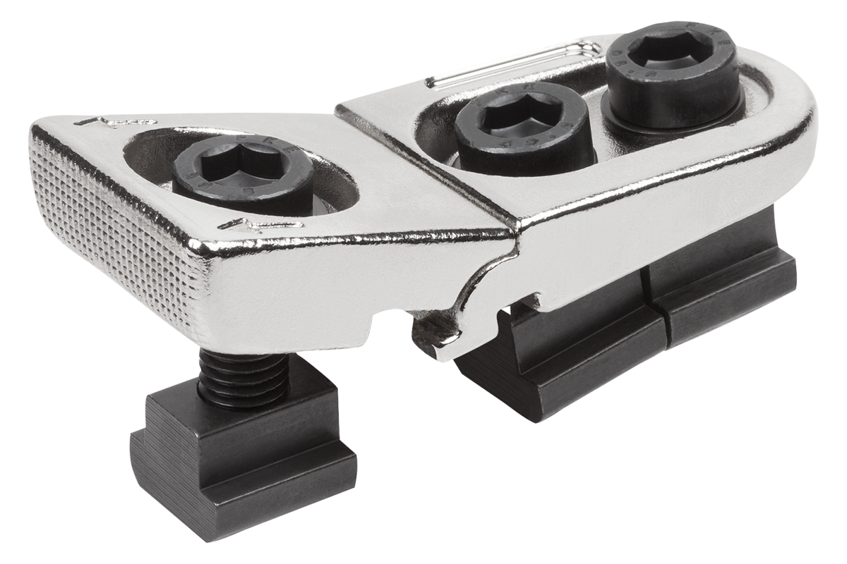 Con i tenditori piatti per cave a T è possibile serrare in particolare pezzi da lavorare bassi. La forza di pressione verso il basso preme inoltre il pezzo in lavorazione sulla tavola della macchina.