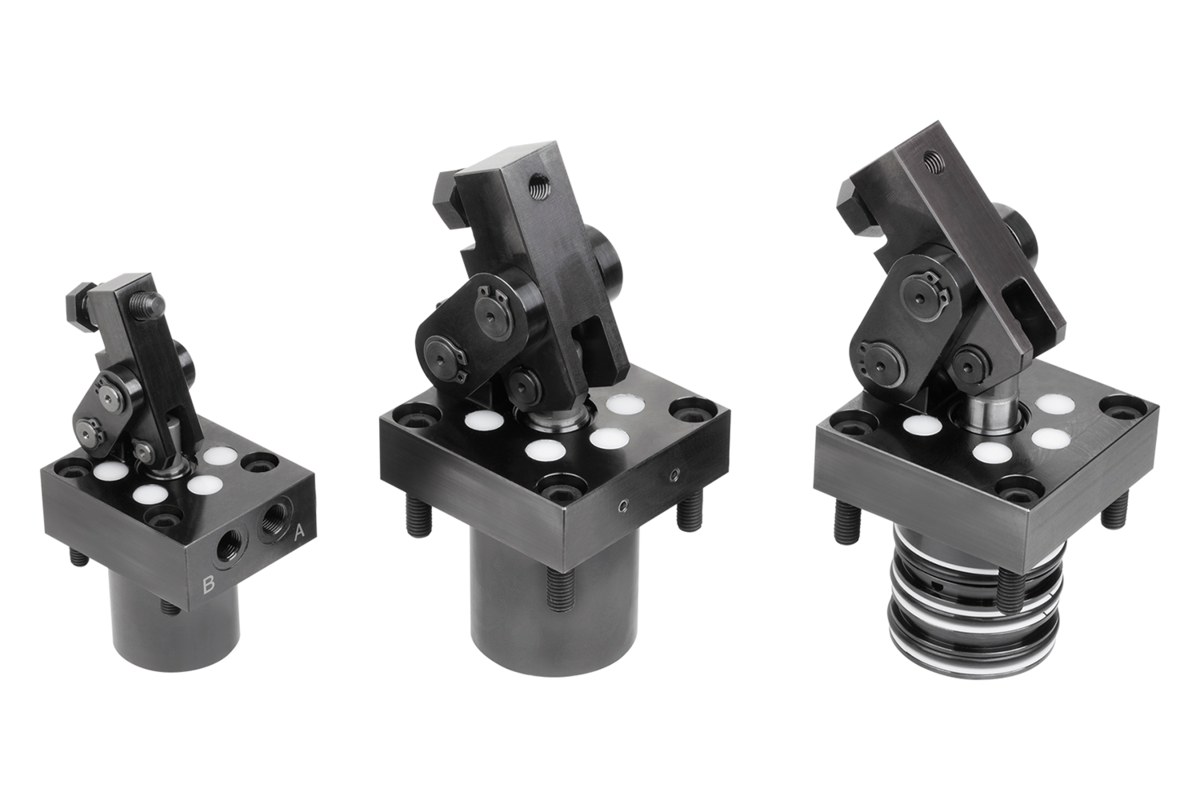 Le morse a leva sono ideali per le applicazioni in cui la situazione di bloccaggio non consente di estrarre il pezzo liberamente verso l'alto quando non è bloccato. A causa del movimento lineare della leva di serraggio durante l'apertura o la chiusura della morsa a leva, è particolarmente adatto per situazioni di serraggio in cui non è possibile un movimento laterale dell'elemento di serraggio, ad esempio in presenza di contorni di disturbo. La forza viene trasmessa alla leva di serraggio della morsa a leva tramite il pistone. La modalità di funzionamento a doppia azione delle morse a leva consente di definire chiaramente i tempi di apertura e chiusura.
