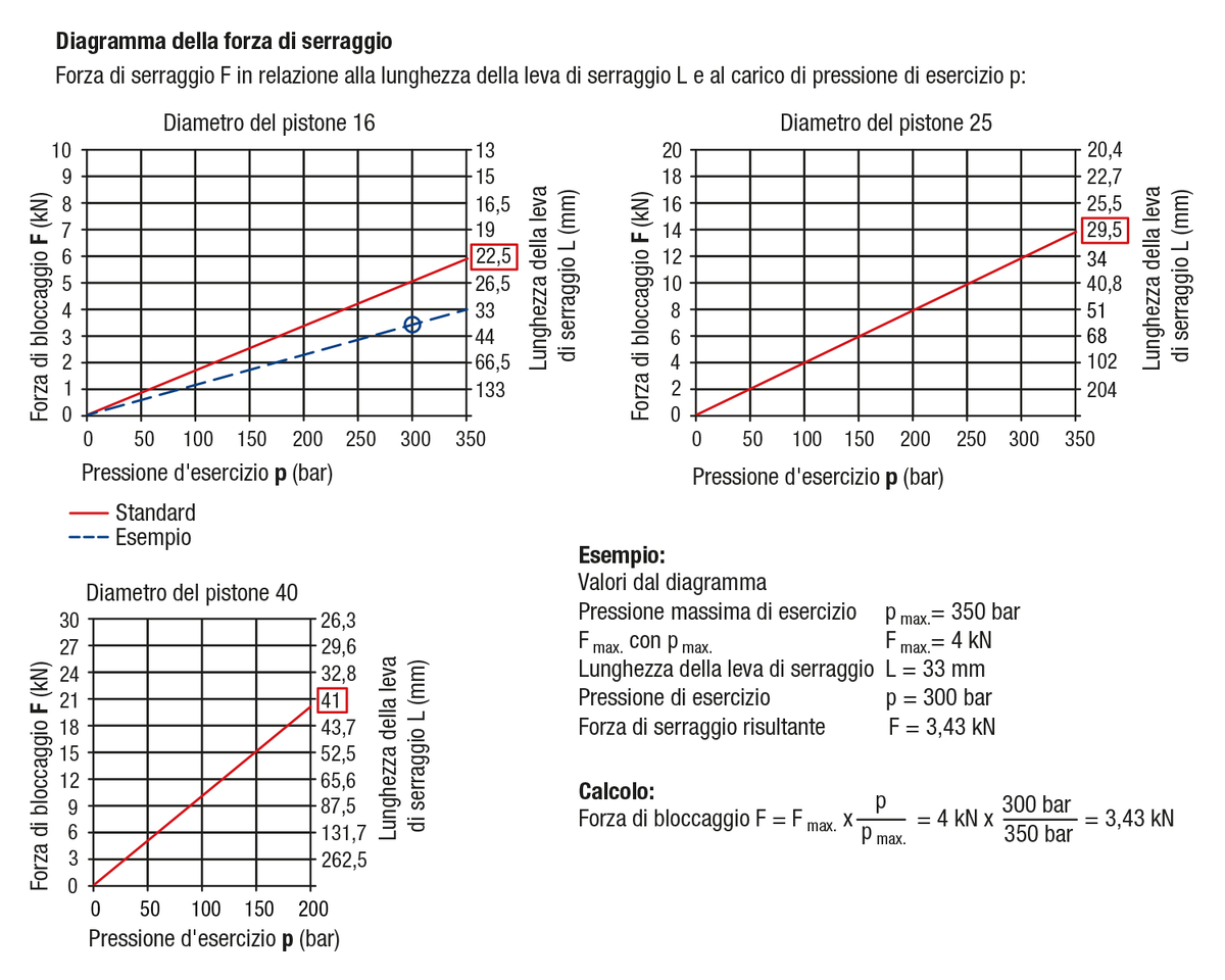 - Pressione massima di esercizio per diametri del pistone 16 e 25: 350 bar.