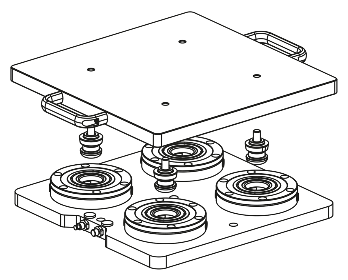 Le piastre intercambiabili sono particolarmente adatte per la rapida sostituzione di dispositivi su piastre di serraggio a punto zero.
