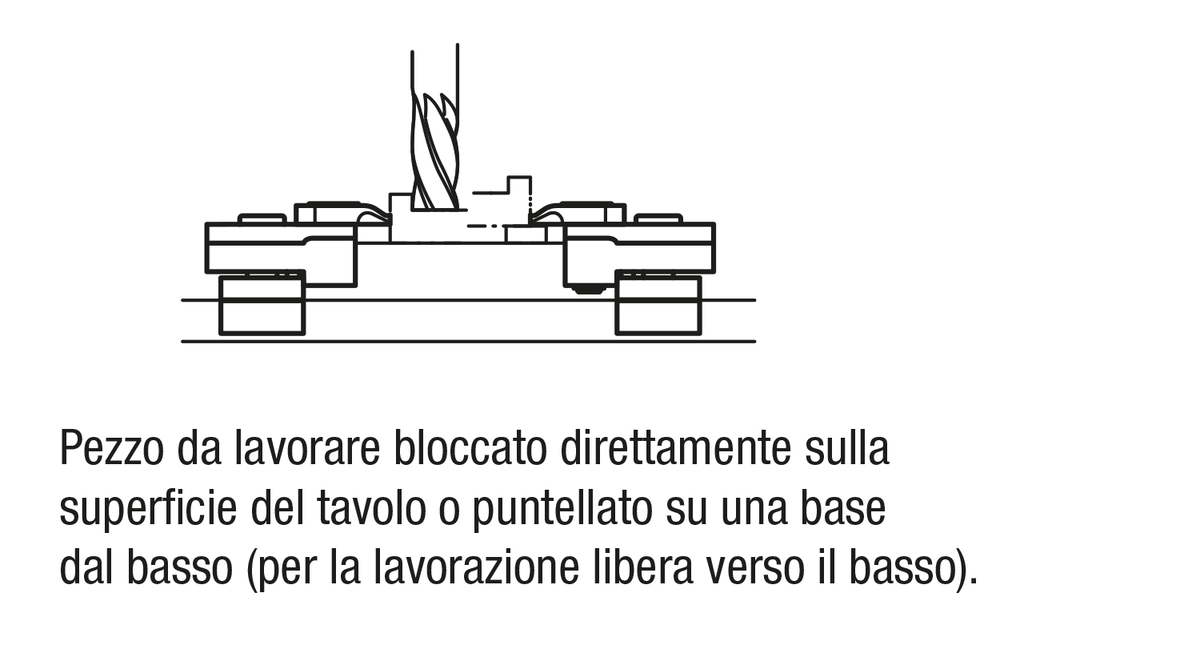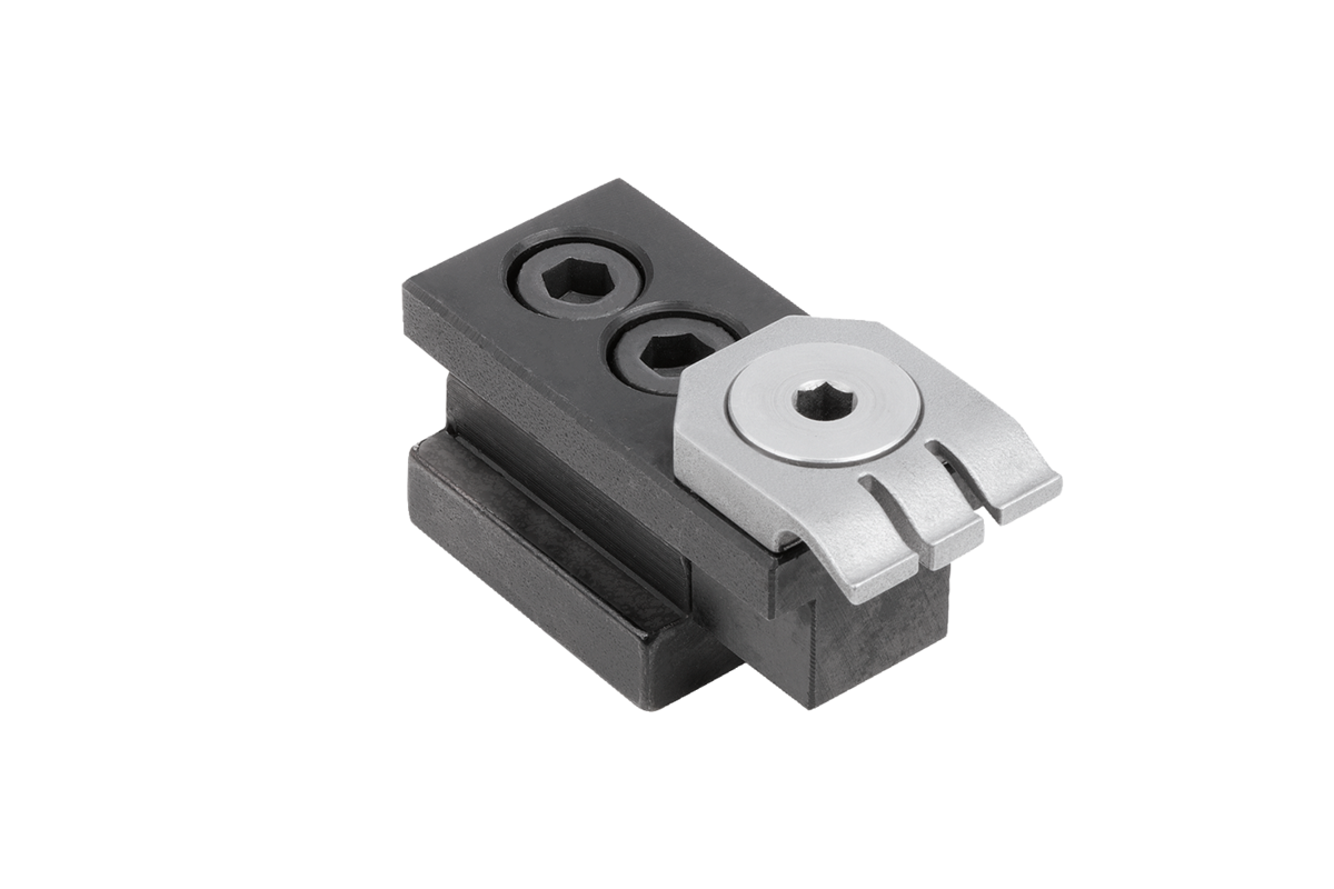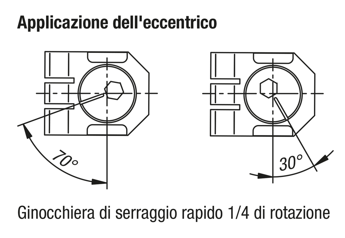 Ruotando la vite eccentrica sull'elemento di serraggio il pezzo viene pressato verso il basso (effetto discendente). Inoltre l'elemento di serraggio preme il pezzo contro la battuta e consente quindi un posizionamento parallelo al piano.