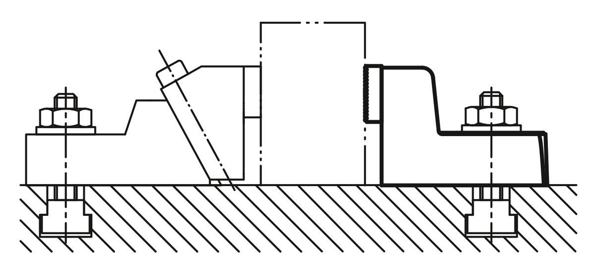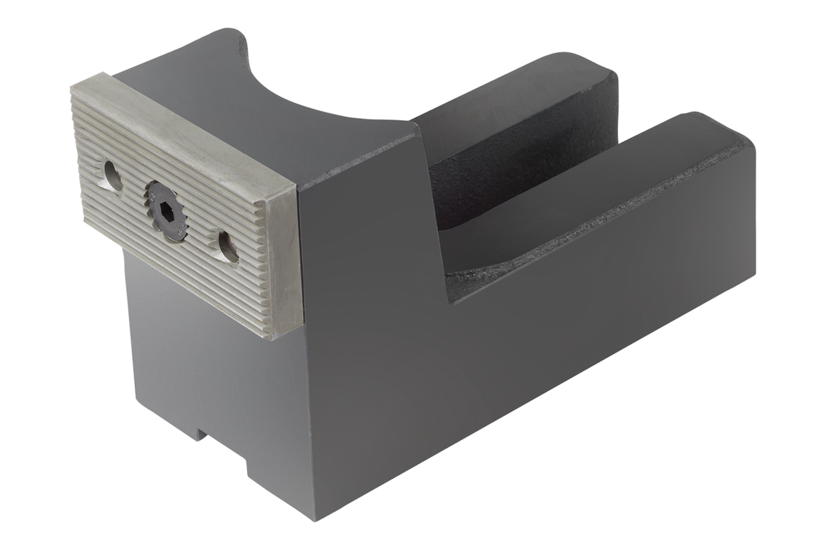 Elementi di arresto per pezzi o dispositivi bloccati o fissati con una ganascia stabile alla tavola della macchina.  Le ganasce di serraggio sono girevoli: presentano un lato liscio per i pezzi lavorati e uno zigrinato per le superfici di fissaggio grezze.