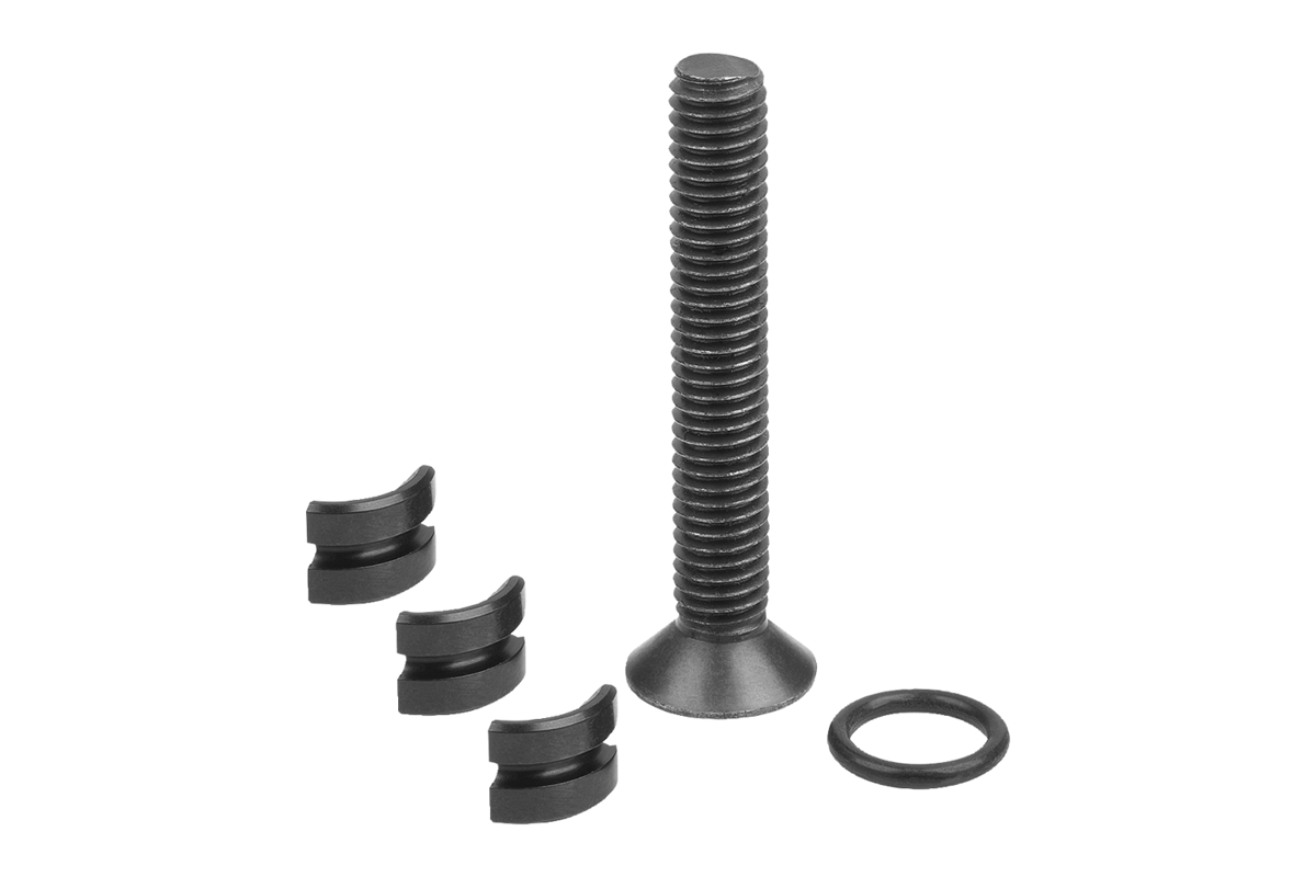 Kit di riparazione composto da vite con testa svasata, O-ring e ganasce in 3 parti.