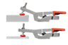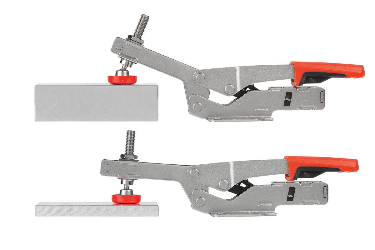 Il dispositivo di bloccaggio rapido si adatta automaticamente all'altezza del pezzo in lavorazione. Adattamento continuo dell'altezza di serraggio entro i 35 mm con forza di bloccaggio quasi costante senza variazione manuale della posizione della vite di pressione.